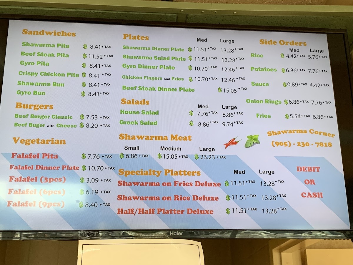 To wash it all down, the beverage offerings include refreshing sodas and water, both at an unbeatable price of CA$1.55. Whether you are a shawarma aficionado or new to this culinary gem, Shawarma Corner offers an experience that resonates with heart, flavor, and authentic charm.
